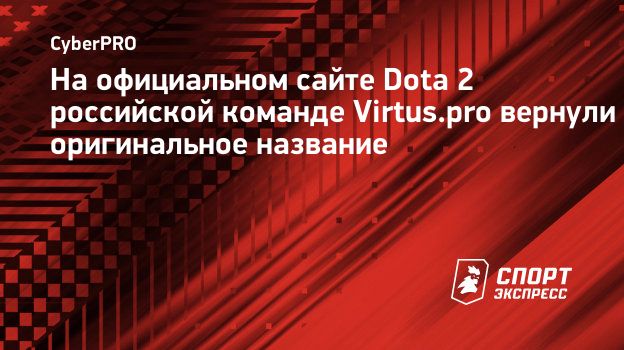 На официальном сайте Dota 2 российской команде Virtus.pro вернули оригинальное название.