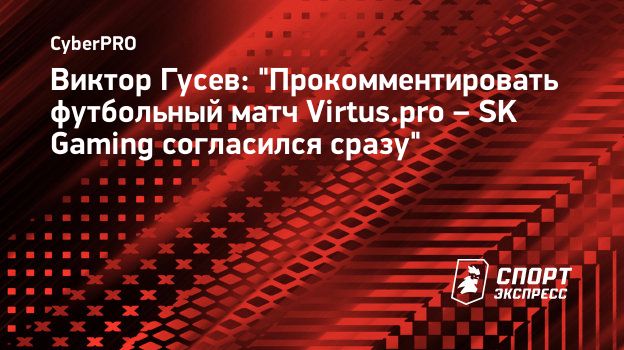 Известный футбольный комментатор Виктор Гусев подчеркнул, что практически не раздумывал над предложением поработать на матче между Virtus.pro и SK Gaming. Сегодня российская и бразильская киберспортивные организации проведут футбольный матч. Встреча начнется в 20.00 по московскому времени.