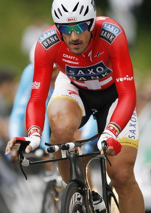 Участник велогруппы Saxo Bank Фабиан Канчеллара, который стал победителем многодневной гонки "Тур Швейцарии", по завершении церемонии награждения поблагодарил за поддержку партнеров по команде и болельщиков. |