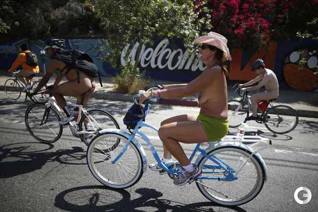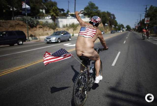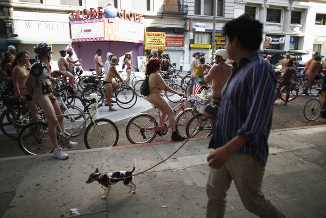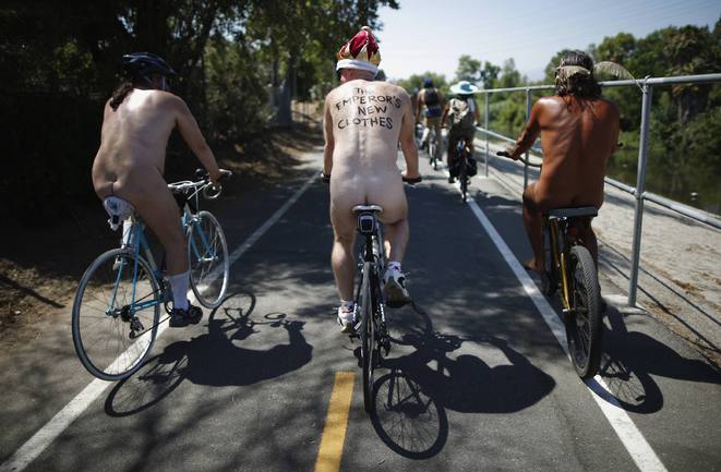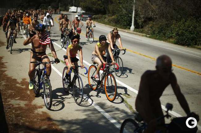 В Калифорнии прошел велосипедный заезд нудистов. Любители ходить голышом выступили против запрета властей Лос-Анджелеса оголять тела в общественных местах. Фото REUTERS