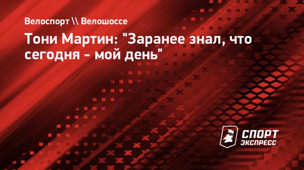 Тони Мартин: "Заранее знал, что сегодня - мой день"