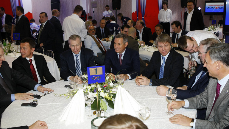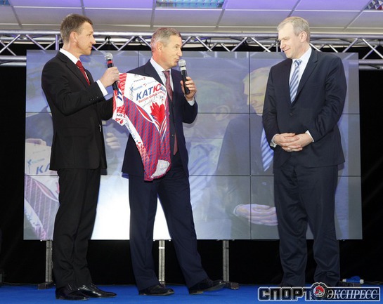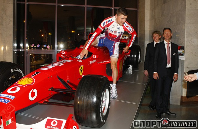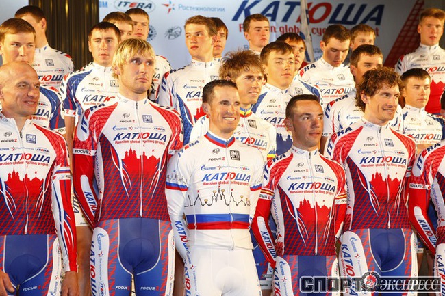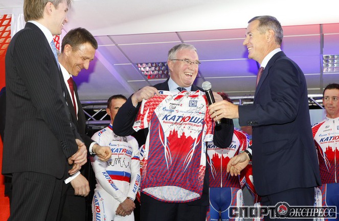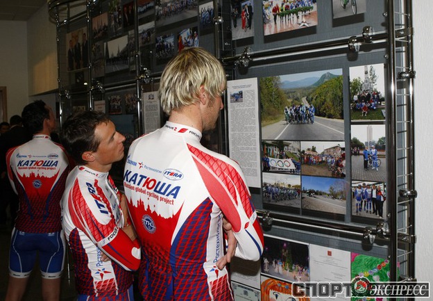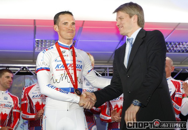 Презентация профессиональной команды «Катюша» на сезон 2011. Российский велогонщик Александр Колобнев во время презентации получил бронзовую медаль пекинской Олимпиады в групповой гонке, которой удостоился после дисквалификации за применение допинга серебряного призера Давида Ребеллина. Фото - Алексей ИВАНОВ, "СЭ"