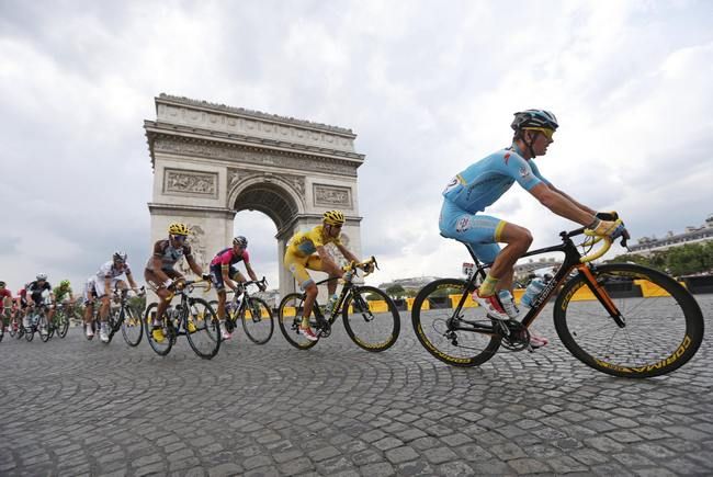 Традиции "Тур де Франс" остаются незыблемы. Обладатель желтой майки Винченцо Нибали по ходу заключительного этапа пил шампанское и делился им со своими партнерами по "Астане". Казахстанская команда, в свою очередь, в начале этапа выходила вперед, а ее гонщик Дмитрий Груздев даже стал первым на последнем подъеме "Тура"-2014 четвертой категории.