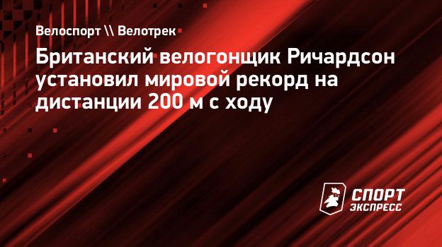 Британский велогонщик Мэттью Ричардсон стал обладателем мирового рекорда на дистанции 200 м с ходу.