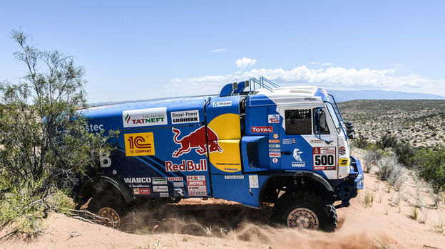 Вильягра сразу бросается в атаку и уже на первом пункте контроля времени опережает Николаева больше чем на минуту. Казалось, аргентинца не остановить, как вдруг коробка передач на его IVECO стала умирать. Закончив первую часть спецучастка на скорости 40 км/ч и проигрывая лидеру уже больше часа, аргентинский экипаж вынужден был выбросить белый флаг. Теперь от третьей победы Николаева отделяет лишь короткий – всего 120 км – спецучасток в Кордобе. Ура!
