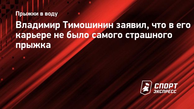 Двукратный чемпион Европы по прыжкам в воду Владимир Тимошинин заявил, что в его карьере не было самого страшного прыжка.