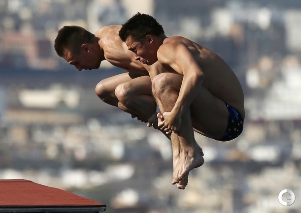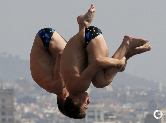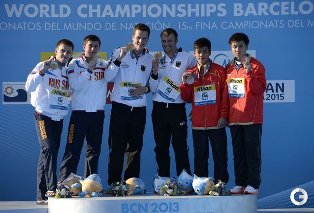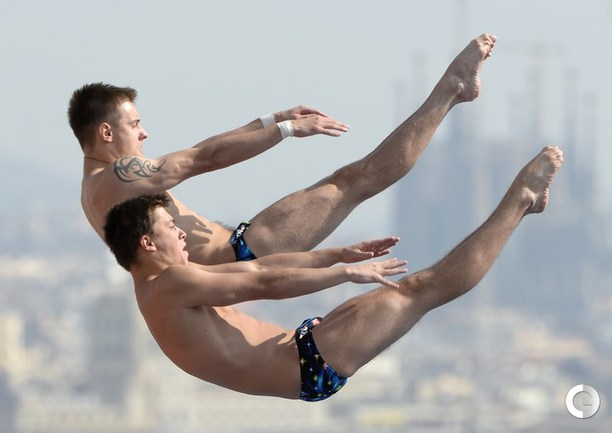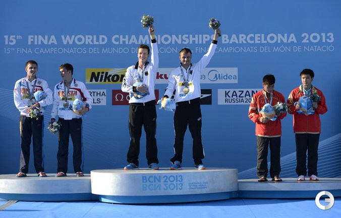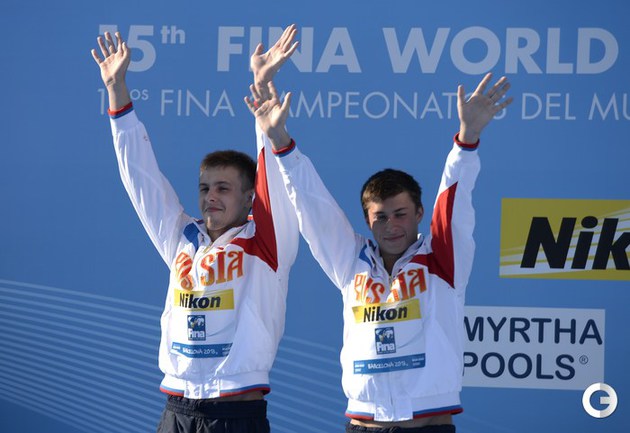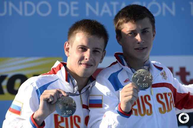 Барселона. На чемпионате мира россияне Виктор Минибаев и Артем Чесаков завоевали серебряные медали в синхронных прыжках с вышки. Они уступили только немцам Саше Кляйну и Патрику Хаусдингу. Фото AFP, REUTERS