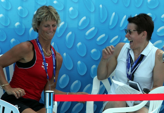 2005 год. Елена ВАЙЦЕХОВСКАЯ (справа) и ее главная соперница на Олимпиаде-1976 Ульрика КНАПЕ. Фото - Александр ВИЛЬФ