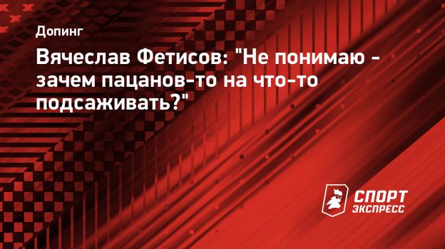 - Я не понимаю - зачем пацанов-то на что-то подсаживать? Это мне вообще непонятно, - приводит "Р-Спорт" слова Фетисова. - Представляете, если у них, не дай бог, что-то найдут, то будет дисквалификация на три года. Мальчишек, у которых вся жизнь впереди - это-то для чего делается? Когда это происходит в 17 - 18 лет - это сломанная судьба. И ведь ребята же в этом не виноваты - не сами же они бегут в аптеку.
