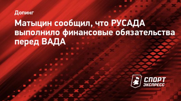Министр спорта РФ Олег Матыцин сообщил, что Российское антидопинговое агентство (РУСАДА) выполнило все финансовые обязательства перед Всемирным антидопинговым агентством (ВАДА).