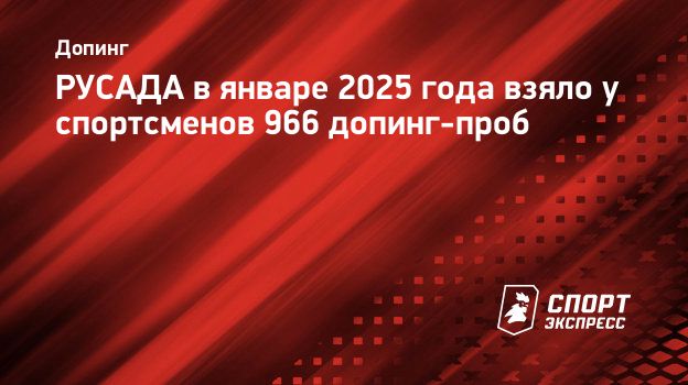 «В январе 2025 года РУСАДА было отобрано 966 проб», — об этом ТАСС сообщили в пресс-службе РУСАДА.