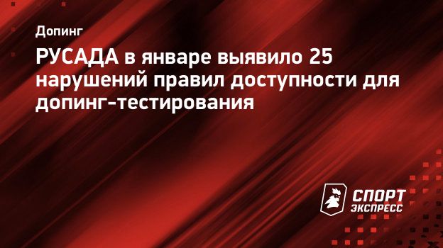 Инспекторы Российского антидопингового агентства (РУСАДА) в январе зафиксировали 25 случаев нарушений спортсменами правил доступности для тестирования.