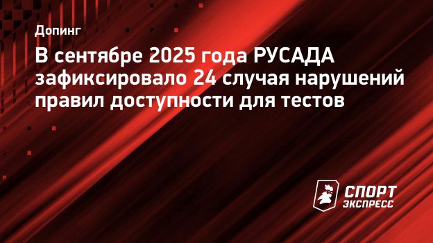 В сентябре 2025 года РУСАДА зафиксировало 24 случая нарушений правил доступности для тестов