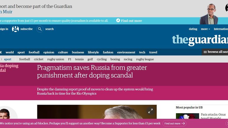 "Прагматизм спасет Россию от большого наказания после допингового скандала", – заявляет The Guardian. Комментируя решение IAAF, газета замечает: у федерации не было иного выбора. Но при этом IAAF "готовит почву для возвращения России до Игр в Рио, рискуя создать впечатление, что неявная сделка уже заключена. <…> Сложный танец IAAF, МОК и России уже пришел в движение". Издание полагает, что возвращение страны к соревнованиям может произойти весной: "все более и более вероятно, что компромисс будет достигнут".