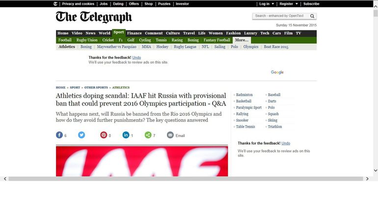 В другом материале The Telegraph также предполагает, что Россия может вернуться к соревнованиям в марте. И в этом случае самое большое из наказаний, которое может получить страна в связи с допинговым скандалом – это неучастие в чемпионате мира в помещении, который состоится в первом месяце весны. Также издание говорит о влиянии политиков на ситуацию. "Присутствует ли политика в игре? Конечно! Без сомнения президент России Владимир Путин контактировал с президентом МОК Томасом Бахом после начала кризиса, а российский министр спорта признал вчера, что говорил с президентом IAAF лордом Коэ несколько раз, – отмечает The Telegraph. – И это не в интересах сторон, если Россия не решит свои проблемы, потому что потенциальный ущерб для репутации страны и спорта теперь неисчислим".