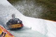 Специалисты фанпарка "Бобровый лог" уже провели успешные тестовые заезды по новой трассе на надувных "плюшках". Общая протяженность трассы, специально построенной для соревнований "Летний горнолужник", - 42 метра. Она состоит из двух частей: 30-метрового желоба для спуска и 12-метровой чаши, наполненной водой, так называемой зоны финиша. Для обеспечения скольжения и более мягкого скоростного спуска трасса оборудована системой постоянной циркуляции воды.