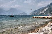 Вообще, озеро усердно используют виндсерферы, а вот кайтерам приходится буквально выживать. Самые тусовочные места: Кампионе и на противоположной стороне от него, чуть севернее, Малчесине. Мне удалось покататься на втором. Хотя есть у меня подозрения, что в Кампионе ветер поровней, т.к., уже перемещаясь на юг по побережью, наблюдала там гораздо большее скопление летающих куполов. В Малчесине же есть кайт-станция (kitemalcesine.it), в 15 метрах от нее на горе располагаются отели Sole и Oasi Beach (3 звезды).