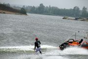 Как известно, с погодой в московском регионе в этот день всем не повезло. Но, дождь и ветер, переходящий в ураганный, не смогли помешать группе энтузиастов вейкбординга собраться на берегу Кудиновских карьеров для осуществления своих замыслов. А погода, без преувеличения, была адская. Зрители наблюдали за происходящим из салонов автомобилей, припаркованных прямо на пляже. Лишь самые отчаянные сгрудились в шатре, едва стоявшем под ударами стихии под бодрую музыку московских диджеев.