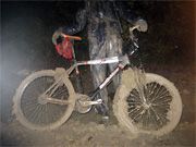 Погода была просто жесть, я такого не видела ни разу! Впрочем, меня она до некоторой степени спасла, нивелировав умение ребят кататься на велосипеде: были горки, на которые по сухой погоде они бы впедалили, а я вряд ли, а так все мирно тащились пешком. Спуски тоже отставала не сильно: "спасал" Шурик, у которого в самом начале велоэтапа отвалилась педаль и остался только штырь, да и со светом были проблемы, так что и он не летел, и я за ним поспевала.