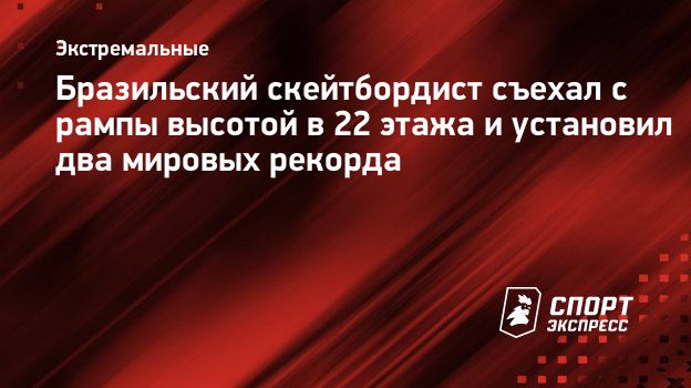 Бразильский скейтбордист съехал с рампы высотой в 22 этажа и установил два мировых рекорда