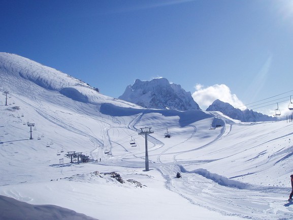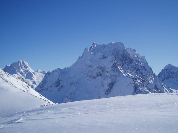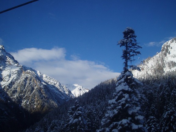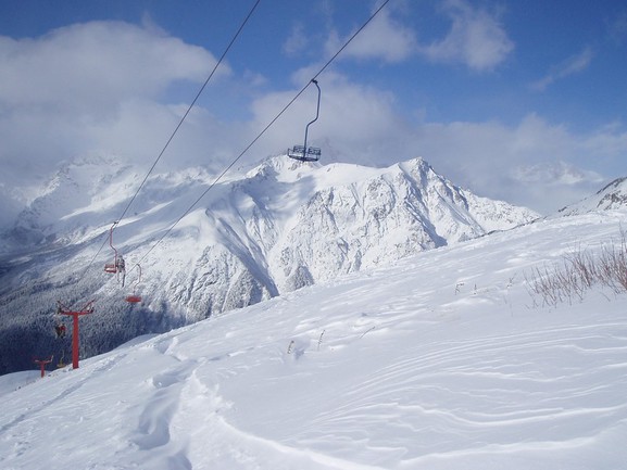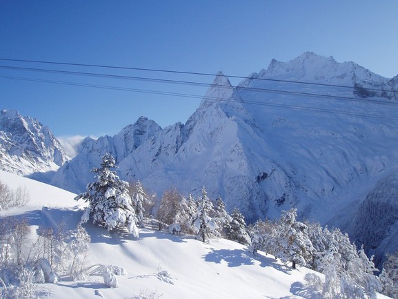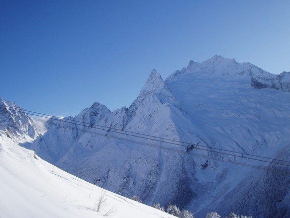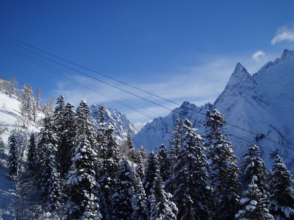 В то время как предолимпийская Красная Поляна "отдыхает" без снега, кавказский Домбай заваливает сугробами. "Зимняя сказка" пришла на курорт за несколько дней до Нового года, и снег продолжает лететь с неба... Высшая точка ущелья - гора Домбай Ульген (4047 метров). Фото Наташи Полетаевой
