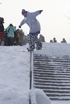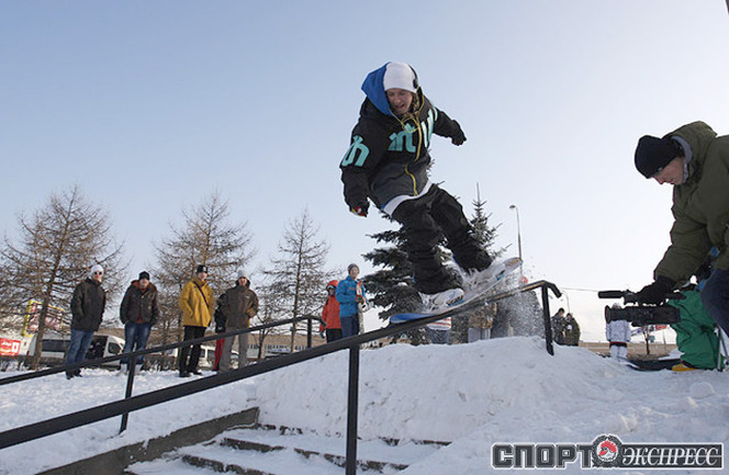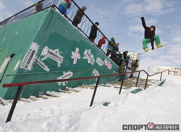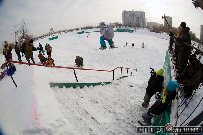 В Москве прошли соревнования по джиббингу (сноубординг) "Железобетон", в ходе которых приглашенные райдеры демнстрировали свое умение покорять железные перила и бетонные парапеты в черте города. Первое место по итогам катания на трех спотах занял Денис Леонтьев из Петербурга, второе - Алексей Некрасов (Мурманск) и третье - Александр Осокин (Петропавловск-Камчатский). Фото Михаила СЕРБИНА, Андрея ЕРМОЛИНА, Дениса КЛЕРО, Кати СТРАМНОВОЙ, Николая ЦАРЕВА