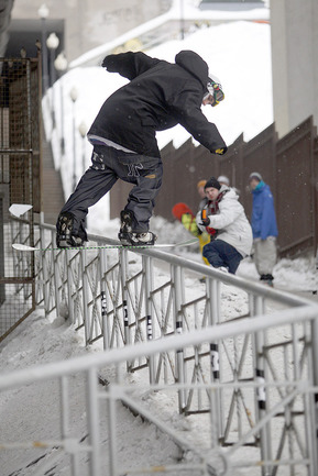 Джиббинг - это катание на сноуборде (или горных лыжах нью-скул) по перилам и прочим городским препятствиям (сноубордисты переняли это развлечение у скейтеров). Каждую зиму и весну в столице проходит не одно соревнование по джиббингу. Корреспондент "СЭ ЭКСТРИМ" Михаил Сербин побывал на втором этапе любительских стартов DC City Jam.