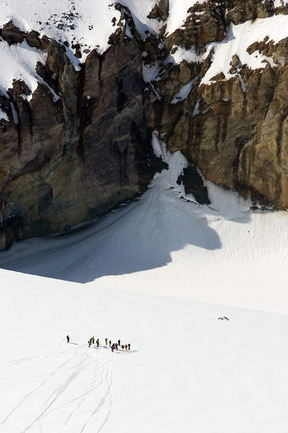 Рассказывает фотограф и сноубордист Константин Галат (kgvisual.com). В апреле 2010 года мне представился случай впервые побывать на Камчатке и полетать-покататься в хели-ски. По приглашению компании "Вертикальный мир" я несколько дней участвовал как фотограф в полетах в различных районах. Нам удалось полетать в районах, где раньше не катались хели-ски... Картинки и ландшафты поражают - бесконечные по перепаду спуски с вулканов, ледники, океан, фьорды и бухты, разнообразные горные хребты и рельефы. Десятки километров нетронутых цивилизацией территорий (и уже проснувшиеся медведи!). Отличные гиды и пилоты - люди, для которых это больше чем просто работа. И много движения по белому!.. Удивительно, прошло уже пару месяцев, после этого у меня были другие горы и экспедиции, и катание, и скорость, и уже лето за окном - а бело-голубые картинки и лунные панорамы с Камчатки постоянно в памяти… Районы полетов: вулканы Авачинский, Мутновский, Вилючинский, Жупановский, Шипулинские горы.