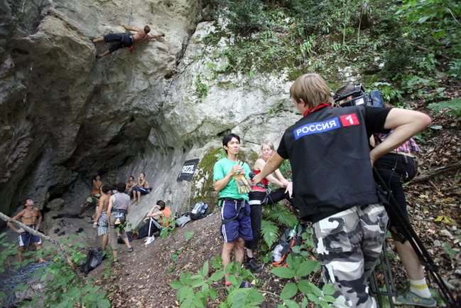 Завершен российский фестиваль скалолазания на естественном рельефе "Гуамка"-2010". Хутор Гуамка, расположенный в Апшеронском районе Краснодарского края побаловал участников и гостей фестиваля прекрасной погодой, комфортной температурой, чистым горным воздухом и прохладными горными реками и ручьями… Все это, так актуальное этим жарким и задымленным летом, а также местная красота природы придали фестивалю атмосферу праздника. Фото Дмитрия Шушпанова.