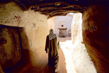 Такая застройка служила отличной защитой от зноя и пыльных бурь, которые здесь не редкость. Даже сейчас, в самое жаркое время дня, тут прохладно. И именно здесь сохранились практически в идеальном состоянии деревянные дверные притолоки, все сплошь изрезанные кораническим письмом. Ничего подобного нигде в других оазисах нет!