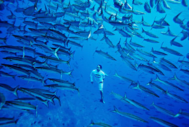 Девятикратный чемпион мира по хай-дайвингу Орландо Дюк провел очередную экспедицию близ берегов родной Колумбии, где прыгал со скал в море, буквально бурлящее стаями акул-молотов…