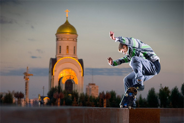 - Пожелаю начинающим фотографам очень серьезно думать головой, прежде чем нажимать на спусковую кнопку. Не спешить, не гнаться за какими-то навороченными супердорогими гаджетами - хорошую скейтборд-фотографию можно сделать на самую простую камеру без всякого дополнительного света. Надо думать, учить азы фотографии, это тоже может пригодиться, стараться творчески подходить к поставленной задаче. Не копировать чужой общепризнанный фотографический стиль, а думать о чем-то своем; пытаться как-то креативно подходить к съемке. Но при этом не забывать, что скейтбординг - это свой специфический жанр, в нем существуют свои основы, которые желательно не нарушать, но при этом стоит быть достаточно гибким и творческим.