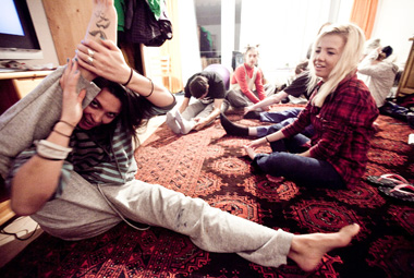 После пайпа есть возможность съехать до самого низа на доске, но зачастую на это ни у кого не остается сил, и ребята предпочитают вагончик. Снять одежду и ботинки тоже получается не сразу - по возвращении сил действительно нет. Приготовить поесть, зайдя в супермаркет по дороге, и отдыхать. Какие тут вечеринки? Нет, конечно, иногда хочется, и даже иногда получается, но лучше об этом не рассказывать!