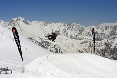 Из-за капризов погоды соревнования перенесли с 18 на 19 апреля. И, как оказалось, не зря! Вместо "молока" и тумана, периодически скрывавшего линию трамплинов Quiksilver-парка на высоте три тысячи метров над уровнем моря, 19 апреля на горе царило практически лето: ни дуновения ветерка, яркое небо и солнце! Зрители в чилауте и судьи (которыми выступили Евгений Конышев и Артем Теймуров) стали срочно разоблачаться.