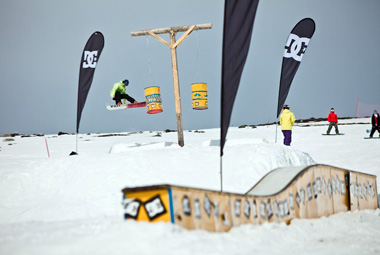 В.Т.: - Концепт все тот же: сноуборд – это фан и стиль! Это образ мышления и жизни! Мы продолжаем концепт легендарного парка DC MTN.lab. Разнообразие и универсальность фигур - каждую фигуру можно было при достаточном воображении использовать десятью различными способами, я уже молчу о десятках разнообразных вариаций проезда парка. Прототипы фигур берутся из буржуйских видео – обычные кучки кикеров надоели и неинтересны. В этом году мы соорудили несколько фигур, которые редко встречаются в российских парках, либо не встречаются вообще: ритм-секция "волна", (в этом году она была как с картинки), "виселица" - уникальная конструкция для стильных бонков. Волл-райд поставили не тривиально поперек склона, а вдоль, что дало райдерам новые возможности для творчества, построили-таки классный гэп - мне кажется, он стал любимцем публики.
