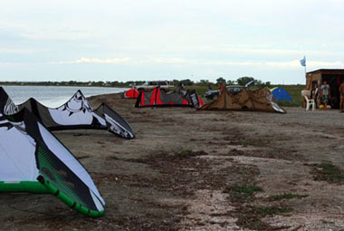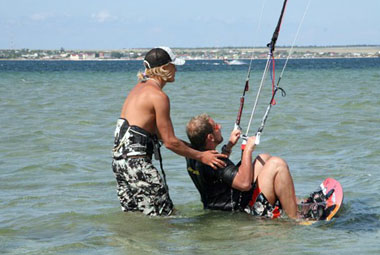 Так было и на "Кайт-безумии"-2010. На нашу группу, состоящую примерно из 10 человек, было трое инструкторов: Юл, Дима и Андрей (Андрей Сальник, двукратный чемпион Украины и победитель последних трех этапов кубка России). Сам Илья Любимов осуществлял администраторские функции, решая вопросы нашего передвижения, обеспечения матчастью и установления дисциплины. "В десять утра все должны быть в сборе!" – грозно предупреждал он. И все слушались. А спать долго и не хотелось. Многие из нас просыпались на рассвете, делали зарядку, купались, быстро завтракали и к назначенному времени уже сидели в беседке, просматривая кайт-литературу или серфовое видео.