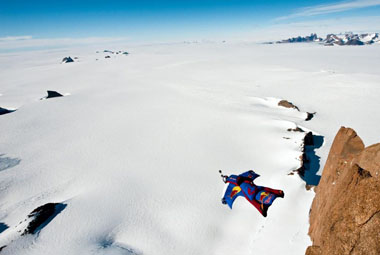 Профессиональный альпинист, парашютист и бейс-джампер Валерий Розов уже много лет вынашивал идею совершить BASE-прыжок в горах Земли королевы Мод в Антарктике. "Район абсолютно уникален. Огромные гранитные стены растут прямо изо льда на высоту до 1500 метров, - рассказывает Валерий. - При этом высота вершин над уровнем моря достигает 3000 метров".