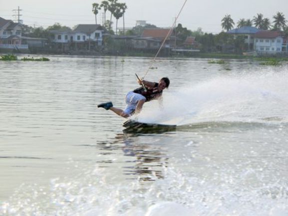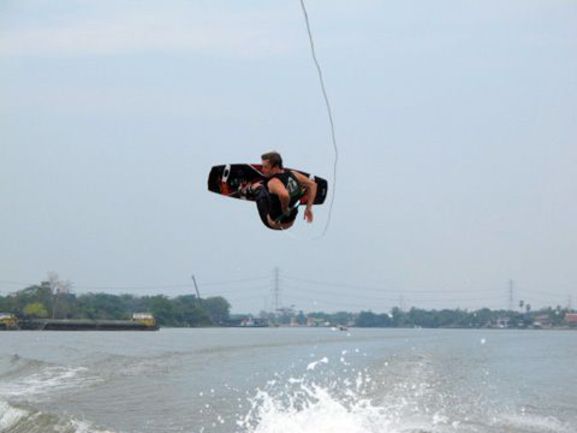 Антон крепко обосновался в пригороде Бангкока на тайской "Волге-реке" - Чао Прая. База находится на территории тайского джет-ски клуба "Wave Side". Там отличная техника – буксировщик Мaster Сraft Х-Star, великолепные условия для тренировок и опытнейшие тренеры дают возможность каждому желающему значительно повысить свой уровень в вейкбординге, приняв участие в организуемых сборах.