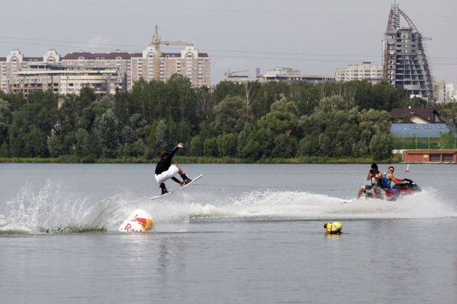 Но самым героическим образом на соревнованиях проявил себя фотограф Михаил Сербин. Все время тренировки и соревновательных заездов он провел в воде, рядом с надувной фигурой. Миша снимал объезжающих его райдеров, маневрируя между вейкерами и водным мотоциклом. За что ему отдельное человеческое спасибо.
