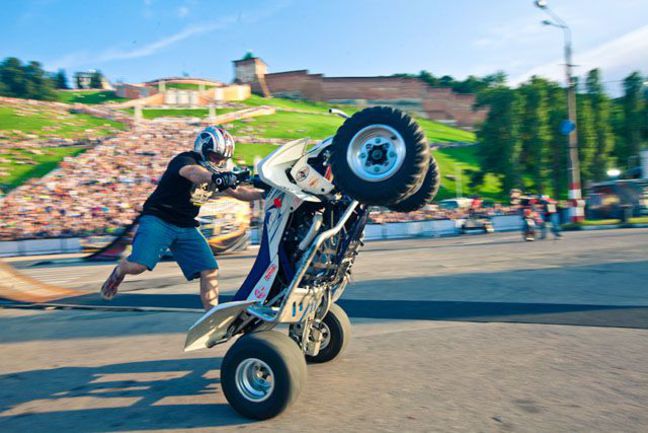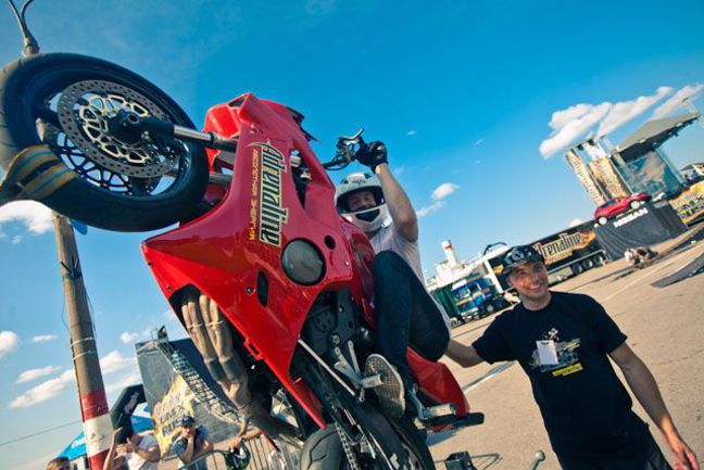 Параллельно с контестами в Нижнем прошел мастер-класс по трюковой езде для победителей викторины "Школа адреналина". Мастера стантрайдинга Марат Канкадзе и Юра Верховников учили победителей трюкам на специальном тренажере – "вилли-машине". А Валерий Кулеша делился мастерством трюковой езды на квадроцикле.