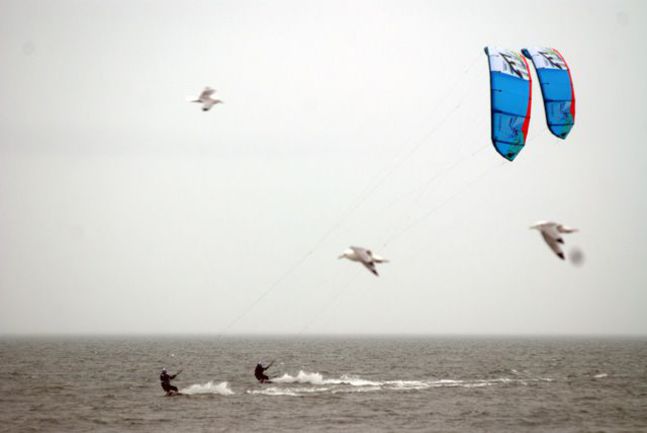 - Да, ставишь кайт вертикально, чуть-чуть откидываешься на спину, но более 30 секунд было трудно находиться в таком положении, очень сильно мерзли ноги.