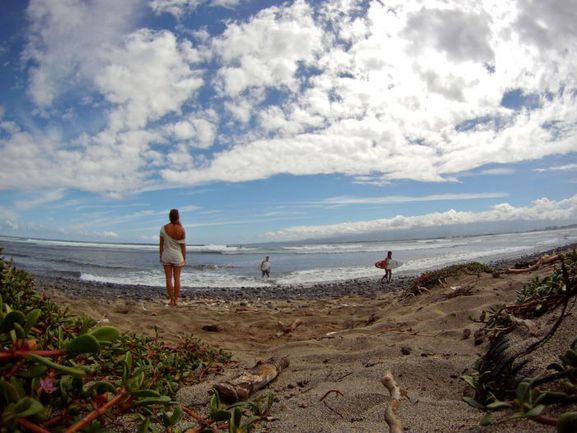 На его джипе мы свернули с основной дороги и долго пробирались куда-то по адским колдобинам, кукурузным полям, пока я не услышала рев прибоя. Мы запарковались на скале, откуда открывался фантастический вид на спот. На воде было уже человек 10 виндсерферов, столько же серферов, поблизости были еще кайтеры и ребята на SUP.