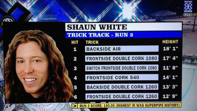 Золотой медалист последней Олимпиады Shaun White снова порадовал своих фанатов. Он буквально выпрыгнул из своих узких штанов и умудрился набрать 100 баллов из 100 возможных в дисциплине Pipe.Это уже пятая золотая медаль этого спортсмена в X-Games.