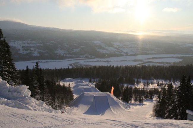 Стоит отметить, что, как и во всей Скандинавии, в этом году снега в Are выпало очень мало и холода наступили очень поздно, поэтому парк не был готов до конца. Шейперы каждый день что-то строили, и парк обрастал все новыми и новыми спотами. Пайп также не был вырезан. К нашему отъезду он был готов наверное на 60-70 процентов.