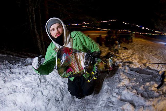 Джиббинг 20 марта от Niche Snowboards прошел также ночью, при искусственном освещении. На кону контеста формата "легкие деньги" стояло пять тысяч рублей и сноуборд. Райдеры получали по 300, 200, 100 рублей за чисто исполненный трюк на "городском" споте, в роли которого выступила одна из лестниц альплагеря "Цей". К сноубордистам присоединилась даже одна смелая девушка-лыжница – Татьяна Бутурлинова из Петербурга. Публика принимала ее на ура, и в итоге, после чисто исполненного ски-слайда, Таня получила не только честно заработанные 500 рублей за трюк от организаторов, но и дополнительные 1000 рублей, собранные зрителями. Судили соревнования Володя Кнаф, а также райдеры Niche Сергей Кирюшин и Александр Волков. Основной набор трюков показал герой лагеря Сергей Гоглов – tailslide 270, два перехода, switch noseslide на bs tail, 180 – 180 out, noseblunt + stalefish – это были самые нестандартные трюки контеста. Вторым по силе стал Коля Ерохин – bs lipslide, 180 на 50. "Коля бился над серьезным трюком fs blunt 270 out и сломал деку, – комментирует Кнаф. – Он рубился больше всего, но, к сожалению, цеплялся за опору на сходе". Хорошо проявил себя молодой райдер DC Антон Донцов – fs boardslide, 180 на 50, switch 50 – 180 out.