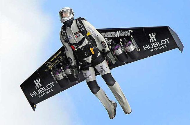 Росси был заброшен вертолетом на нужную высоту, достаточную для того, чтобы стабилизировать полет. Крыло развивает скорость до 300 км/ч и контролируется джойстиком в руке. Остальное управление осуществляется телом пилота - плечами и ногами. Для посадки используется парашют, причем кроме посадочного и запасного крыло Ива Росси оснащено также и собственным парашютом, который обеспечивает его мягкое приземление в случае, если возникнет необходимость сбросить крыло.