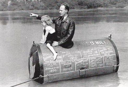 В 1901 году 63-летняя Энни Тэйлор кинулась с водопада в бочке и осталась в живых. Она использовала бочку оригинальной конструкции, из дубовых и железных деталей, с матрасом внутри. Тейлор забралась в бочку, установленную на лодке. Друзья Энни закрутили крышку и велосипедным насосом закачали воздух внутрь; отверстие для шланга затем плотно забили пробкой. Все путешествие вместе с падением заняло не более 20 минут, но прошло немало времени, прежде чем бочку смогли открыть. Журналистам Тейлор заявила: "До последнего вздоха я буду отговаривать других от такого подвига. Я лучше залезу в жерло пушки, готовой разорвать меня на части, чем еще раз спущусь по водопаду". Этот героический шаг помог Энни добиться известности, но, к сожалению, не принес ей благосостояния, ради которого она и отважилась на этот безумный поступок. До конца дней Тэйлор влачила жалкое существование, позируя фотографам, и все из-за того, что ее менеджер оказался аферистом и скрылся с деньгами.