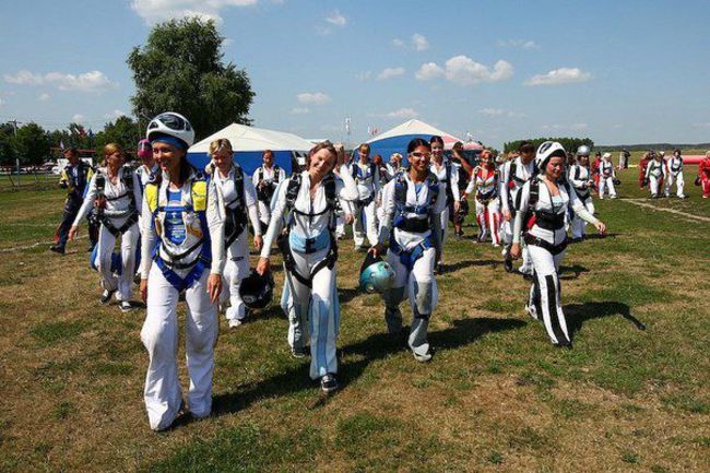 - Да, в прошлые выходные мы прыгали тренировочный сбор в Коломне на аэродроме, где будет проходить рекорд. Было много девчонок, причем и тех, кого я знаю уже много лет, и тех, кто в этом году впервые начал прыгать с парашютом. Девчонки приехали не только из Москвы, но и из Питера, Брянска, Ростова-на-Дону, Ярославля и других городов России. Прыгали двумя бортами. Все старались сделать все как можно лучше. В этот раз упор в подготовке был сделан на отработку разбежки, т.е. той часть прыжка, когда фигура собрана и нужно от нее удалиться как можно дальше, чтобы при раскрытии парашюта рядом не было других парашютистов, чтобы избежать столкновений с ними. Это очень важно. Мы отрабатывали разбежку в группе, когда несколько человек разбегаются вместе в заданном направлении от фигуры до определенной высоты и только потом уже рассредоточиваются в небе на максимальном расстоянии друг от друга. В 2005 г. на женском мировом рекорде в Штатах я впервые, по большому счету, столкнулась с таким подходом. Было очень непривычно и сложно. Мне кажется, до сих пор у нас в стране этому уделяется не так много внимания, все понимают, что надо так делать, но не все делают…