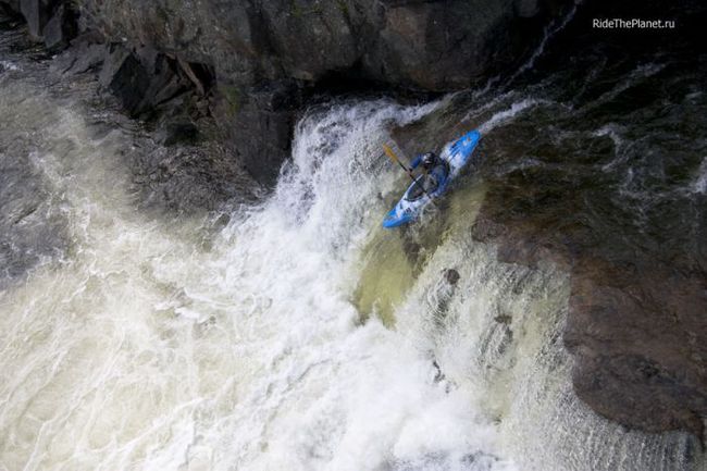 "На Маре мы прыгнули "Homerun", — продолжает Алексей Лукин. — Секция "домашних" водопадов, в десяти минутах от порога палатки до первого среза. Первый раз мы плыли секцию один час, зато когда едешь ее второй раз, по уже известной линии, можно пролететь всю секцию за 15 минут от старта до финиша! Пять водопадов с общим перепадом примерно 25 метров, недаром это именно "домашняя секция"!"