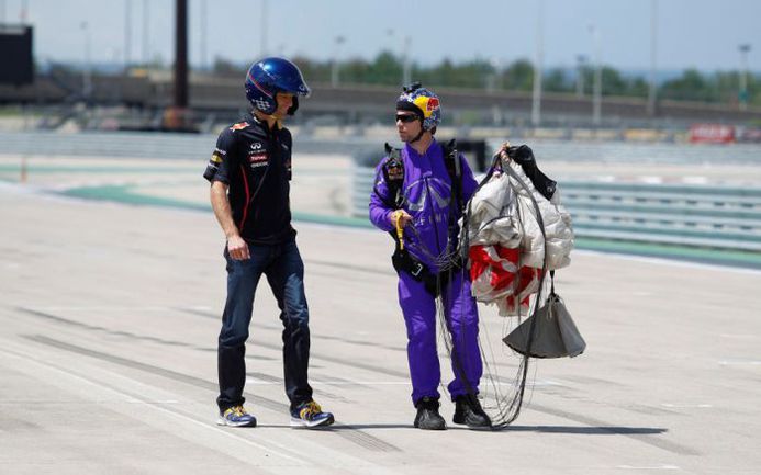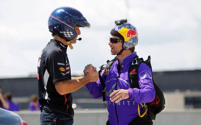 Марк Уэббер примерил на себя роль скайдайвера, в свою очередь научив Джона Девора нескольким приемам быстрого вождения. После чего спортсмены вернулись к привычному делу: Девор поднялся в небо на вертолете, а Уэббер сел за руль Infiniti G37 S. Прыжок парашютиста и старт автогонщика состоялись одновременно, на финиш спортсмены тоже пришли вместе – победила дружба!